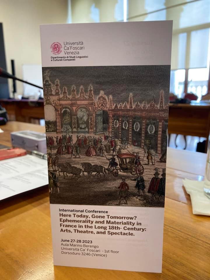 This conference investigates the topic of ephemerality in French culture in the long 18th-century, embracing both artistic, theatrical, and performance practices created through fragile and temporal media like theatre settings, sketches, fireworks, or spectacles that were performed but never replicated or transcribed, as well as trends in modes of dress, walking, and ways of being. In order to exist, however, ephemerality needs materiality, since any creative process intersects with the material requirements that both artworks and performances need: materials, location, scripts, costumes, instruments. How do ephemerality and materiality connect within the cultural context of 18th-century France?
